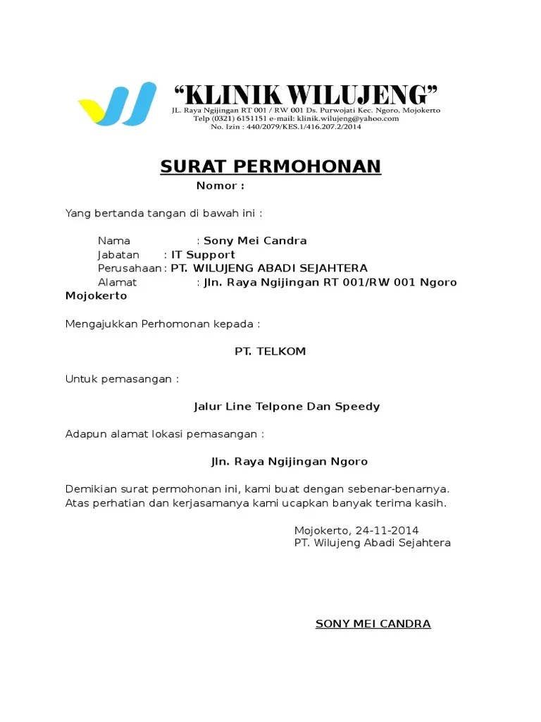 Contoh Surat Permohonan Pemasangan Internet / Contoh Surat Permohonan Pemasangan Jaringan Internet Surat Permohonan Desain Contoh Surat Krpvxka89x